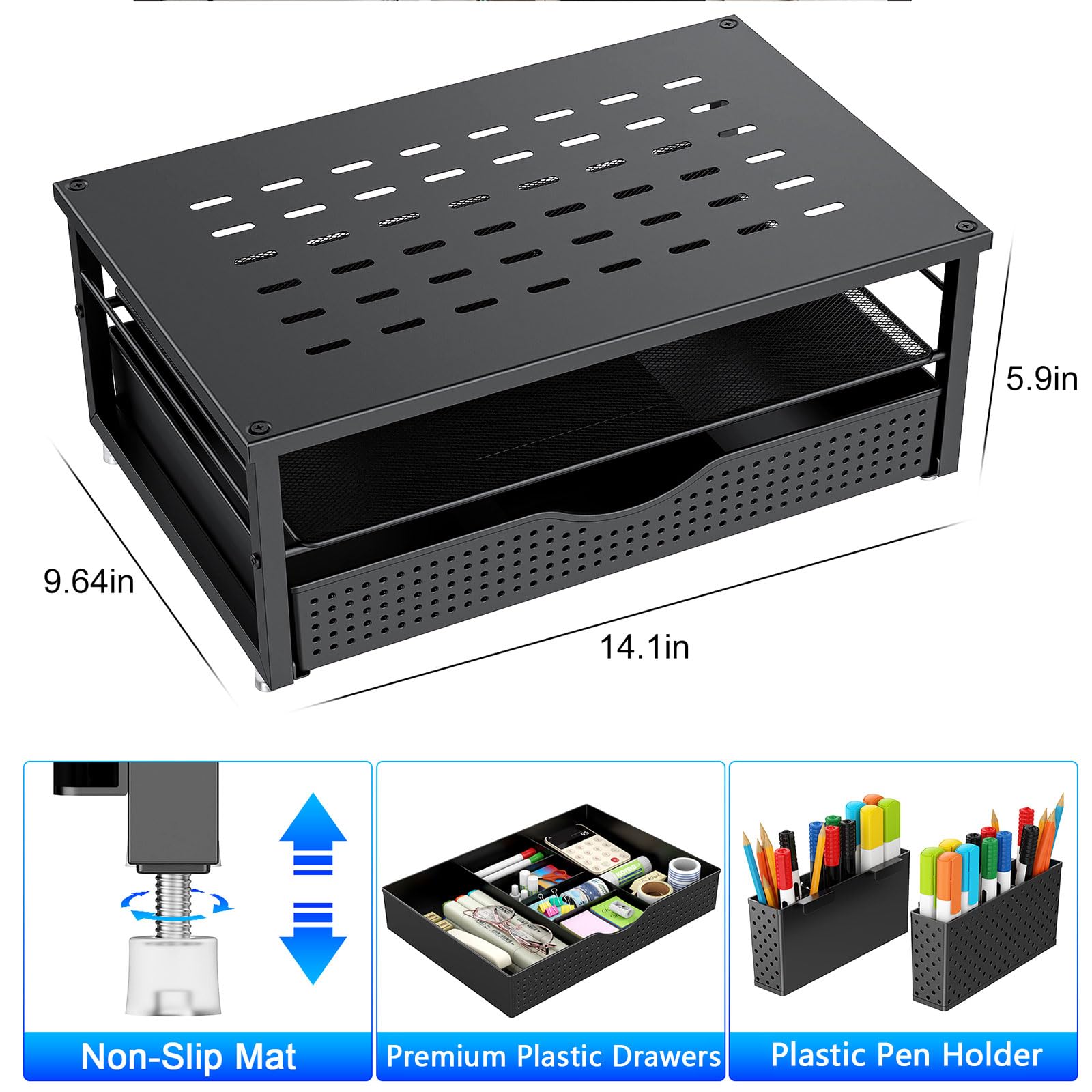 - 【Improved Work Efficiency】: The monitor riser comes with a sliding drawer and two pen holders. It accommodates various office desk items, saving space. It helps you quickly identify the contents of each compartment, doubling your work speed.