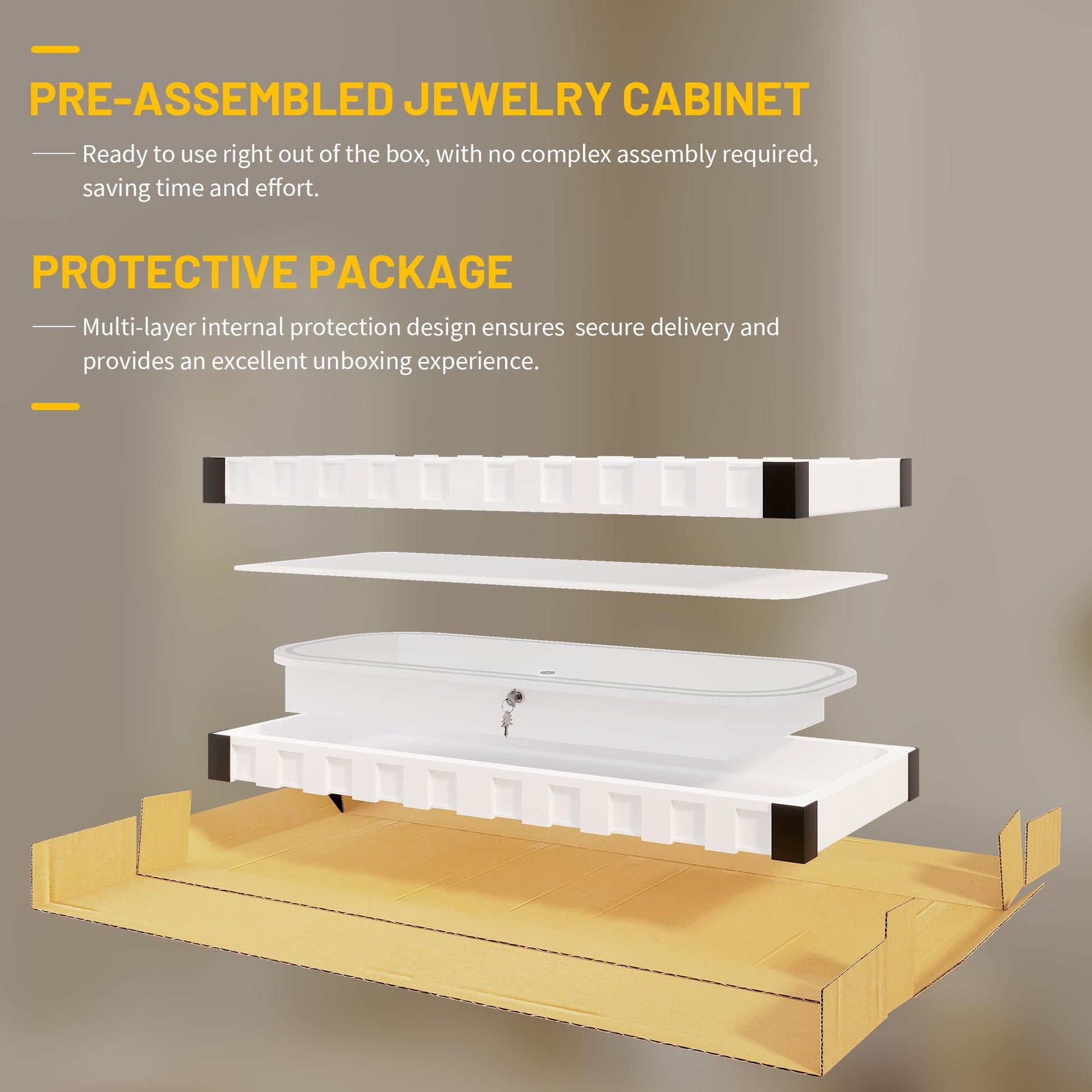Safely store and secure your valuables within the hanging jewelry cabinet using the included 2 keys and built-in lock.
