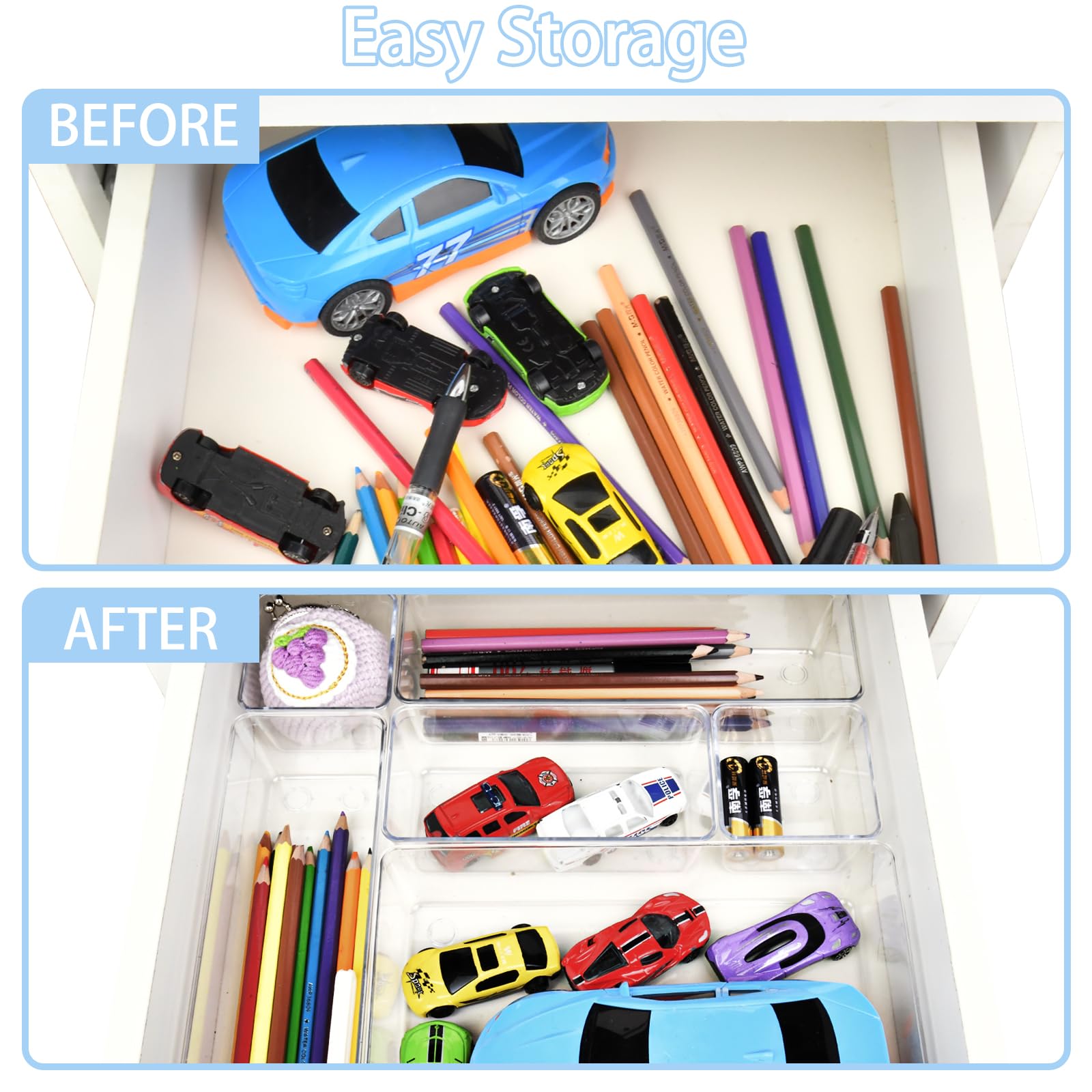 - Easy to Clean: Maintain a tidy and hygienic environment effortlessly. These acrylic drawer organizers are easy to clean, ensuring your items stay organized and looking impeccable at all times. Simply wipe them down for a quick refresh