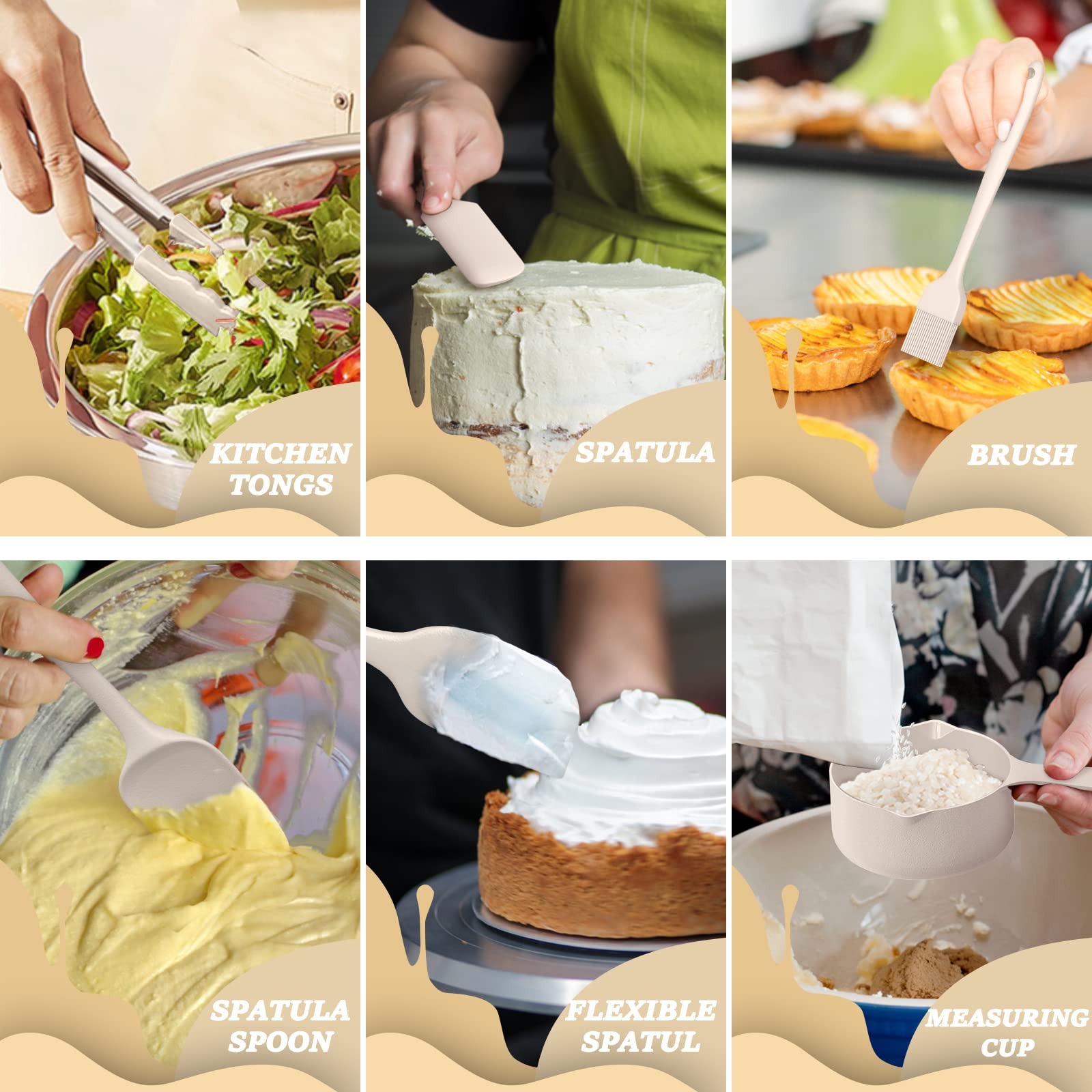 - 6 SIZES BOWLS & EXTRA KITCHEN TOOLS SET: The range of sizes from 7QT down to 1QT. Each bowl comes with a QT label to make it easier to choose the right size, Bowl sizes fit on standard-size refrigerator shelves and cabinets. Comes with a brush, spatula, whisk, measuring spoons