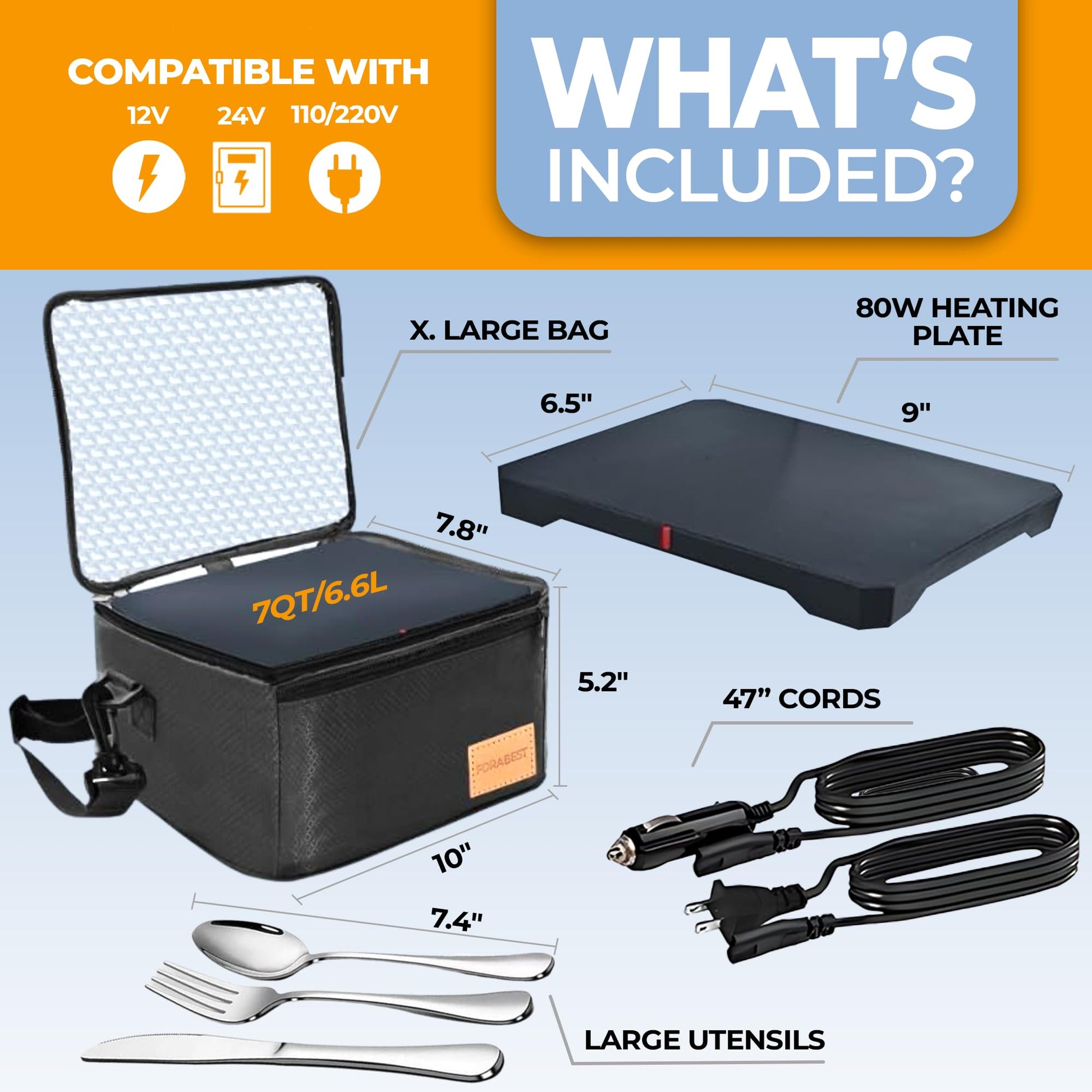 - VERSATILE PORTABLE FOOD WARMER FOR ALL SETTINGS: This universal portable food warmer lunch box is designed for ultimate convenience, whether you’re at home, in the office, or on the go. Compatible with 12V, 24V, 110V, and 220V outlets, it works as a portable oven or portable microwave for car, truck, or travel, ensuring hot meals wherever life takes you.